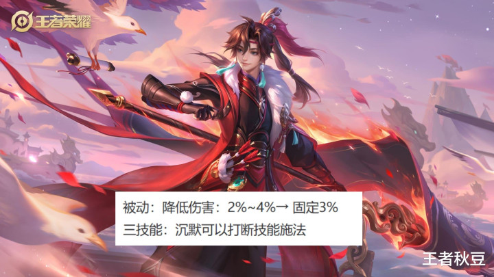 孙权被动降低伤害固定调整为3%,前期加强后期削弱。但是孙权整体前期很弱,没出闪电匕首和末世前没伤害,没出肉前没坦度,后期削弱真的很伤。三技能改为沉默可以打断施法,峡谷中目前的沉默技能有亚瑟一技能,司马懿二技能,伽罗二技能,花木兰被动等等,沉默技能不算多,大部分对局影响不大,但是遇到就会很难受,特别是亚瑟,太容易沉默了。