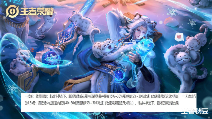 一技能调整为无攻击1.5秒后,靠近墙体靠近墙体或在圈内获得40~80点移速和15%~30%攻速(攻速效果延迟3秒消失),非战斗状态下,额外获得伪装效果。简单来说,就是不攻击就能轻松获得移速和攻速加成,即使被被人攻击了,只要自己不打人,就能获得攻速和移速加强。非战斗时,狙击不打人时,也能获得额外的伪装效果。实战意义重大,可能可以开发出新的玩法。